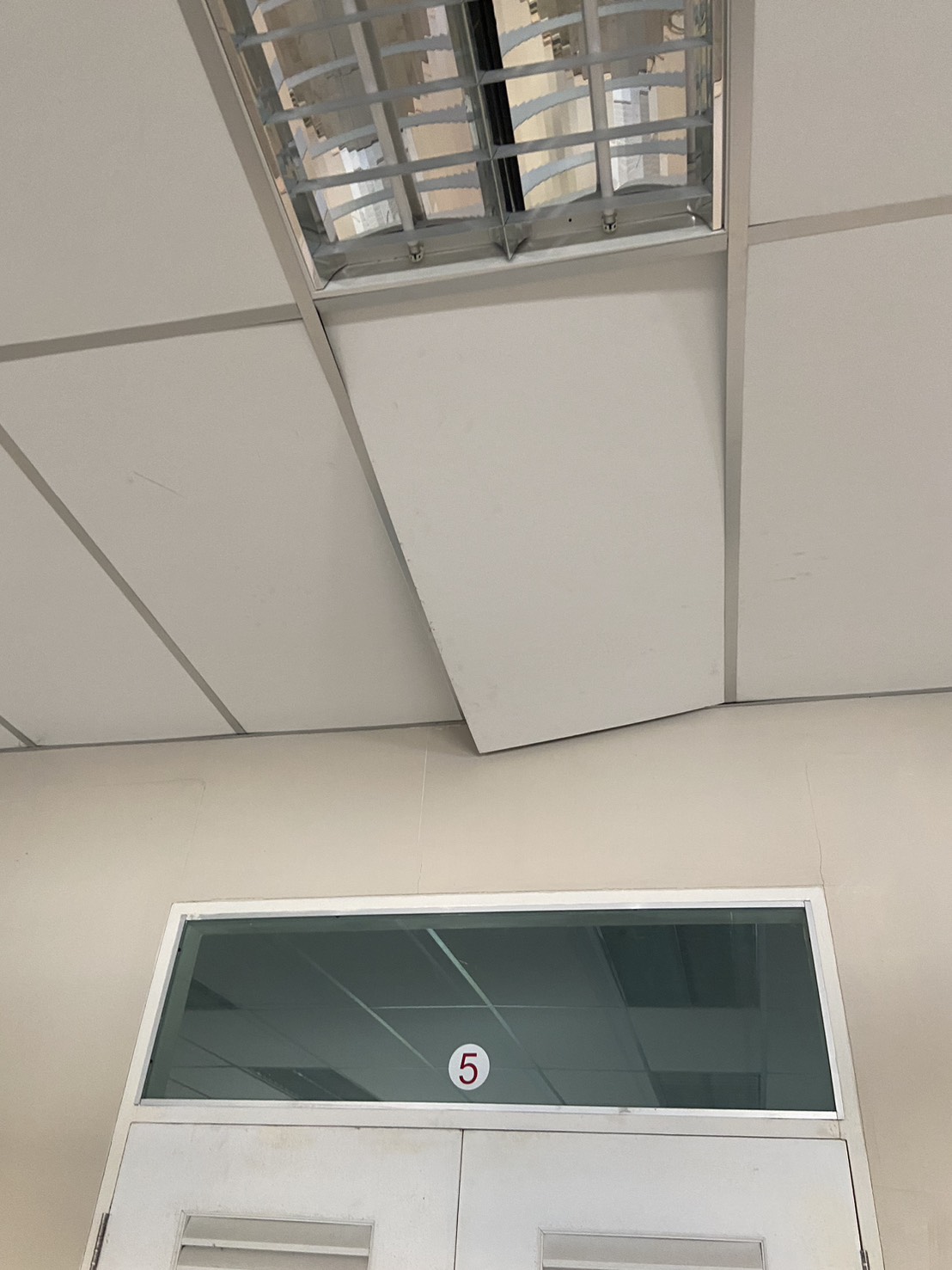 สาเหตุ/อาการ: ไฟในห้องเสียและฝ้าหน้าห้องหลุด
