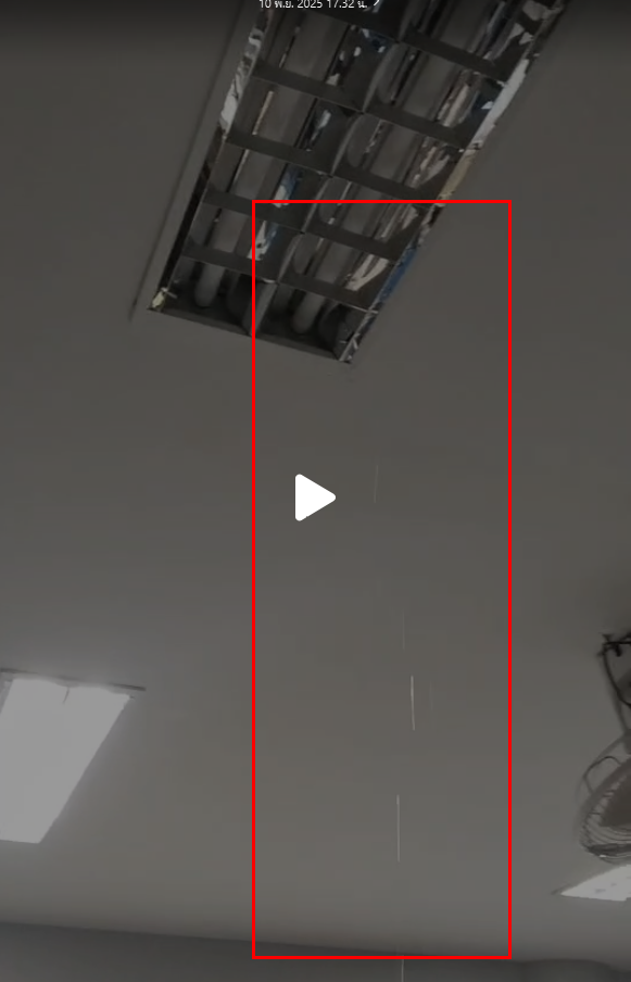 สาเหตุ/อาการ: เมื่อฝนตก น้ำฝนไหลจากเพดานลงมาบริเวณในห้อง