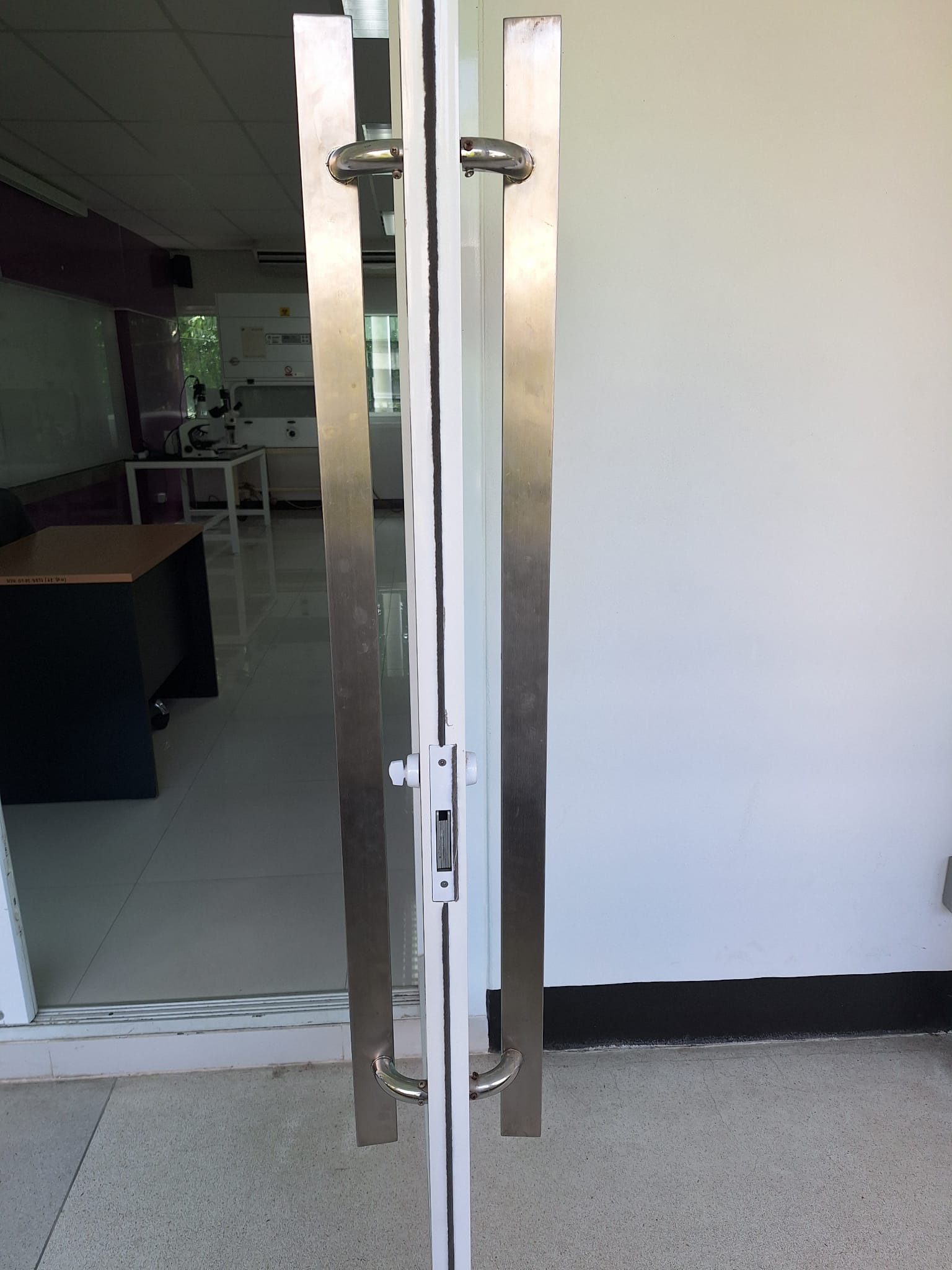 สาเหตุ/อาการ: ประตูห้องปฏิบัติการ 434 ที่จับประตูปิดเปิดหลามจะหลุด และประตูฝืดเปิดลำบาก