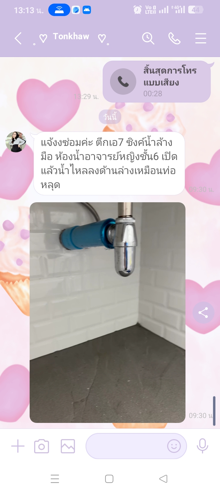 ประเภทงานซ่อม: งานประปา รายละเอียดงานซ่อม: แจ้งซ่อม-อาคาร