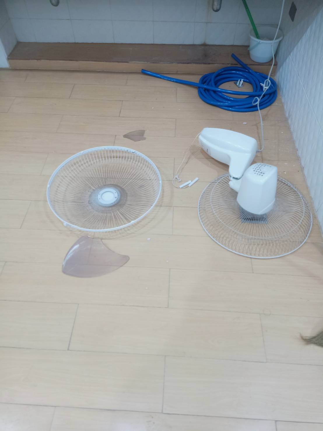 สาเหตุ/อาการ: พัดลมหล่นตกลงมาแตก